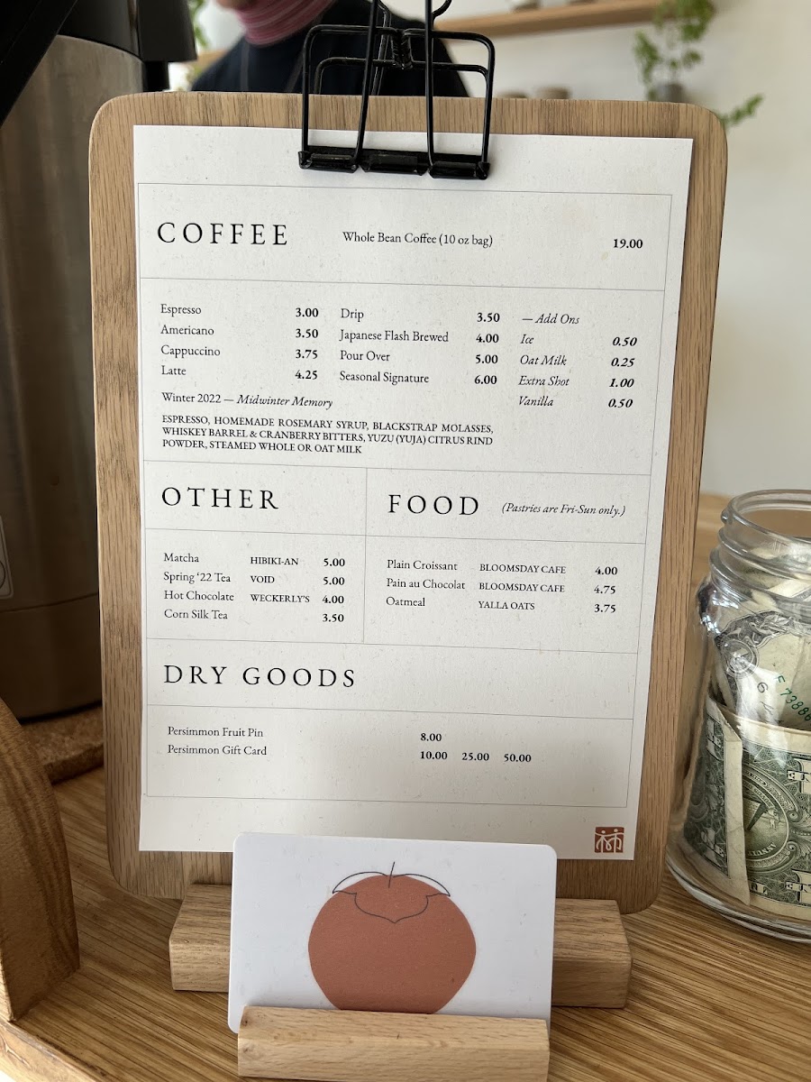 Located at 11 W Girard Ave in Philadelphia, Persimmon Coffee is a cozy gem that invites coffee lovers to indulge in artisanal drinks and delightful pastries. The atmosphere is warm and inviting, making it a perfect stop for both casual catch-ups and quiet reflections.